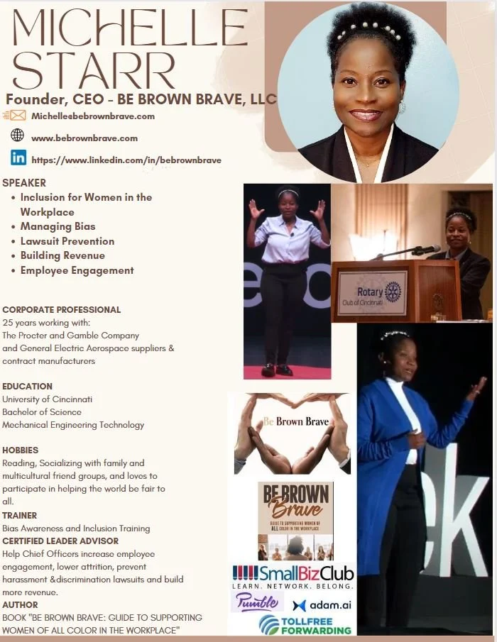 My book “Be Brown Brave (Guide to Supporting Women of ALL Color in the Workplace)” discusses the importance of collaboration for companies. It shows how senior leaders can overcome everyone’s unique perspectives and work well with others to create a stable and beneficial workforce, elevate their company's performance, AND build better communities!